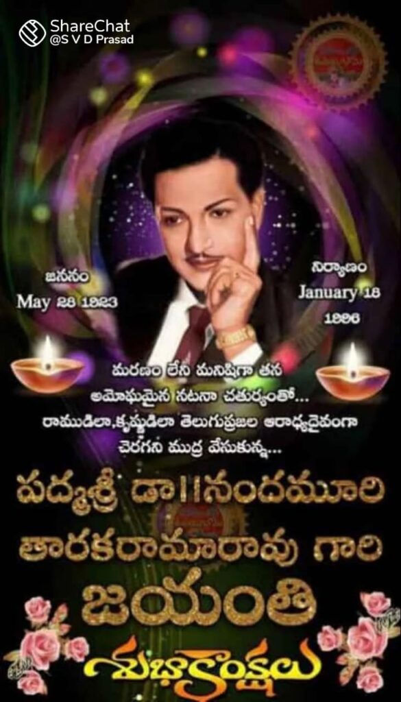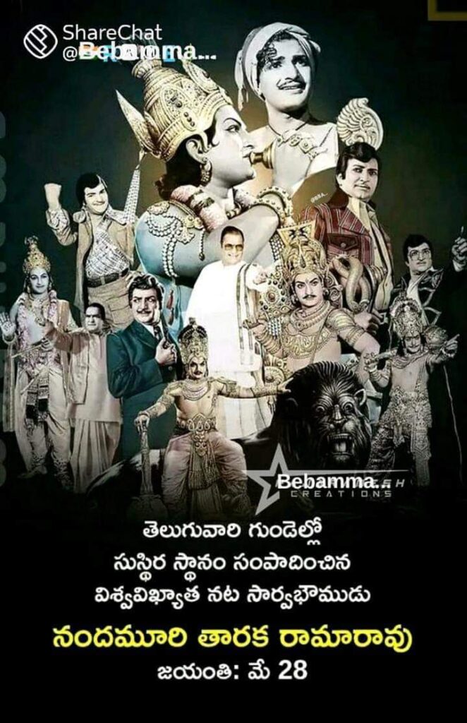 ఎన్టీఆర్ ఏ పాత్ర పోషించిన గుండెలకు హత్తుకుంటుంది. ఏ డైలాగు చెప్పినా ఆలోచింపజేస్తుంది. దేశం గర్వించదగిన నటులలో అగ్రస్థానంలో నిలిచారు. ఆ పాత్ర ఈ పాత్ర అని లేదు. పౌరాణిక , జానపద, సాంఘీక చిత్రాలలోని వైవిధ్యమైన మరపురాని పాత్రలకు ఆయనే చిరునామా. రాముడైనా-రావణుసురుడైనా.కృష్ణుడైనా-ధుర్యోధనుడైనా.. కర్ణుడైనా-అర్జునుడైనా ఇలా ఏ పౌరాణిక పాత్ర పోషించినా ఆయనదో ప్రత్యేకమైన శైలి. అందుకే తెలుగు వారి హృదయాలలో ఆరాధ్య దైవంగా నిలిచాడాయన. ఒక రాజకీయ పార్టీని స్థాపించి కేవలం తొమ్మిది నెలల కాలంలోనే ముఖ్యమంత్రి పీఠాన్ని అధిరోహించిన గొప్ప నేత ఆయన.