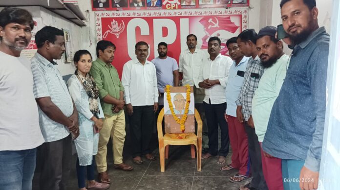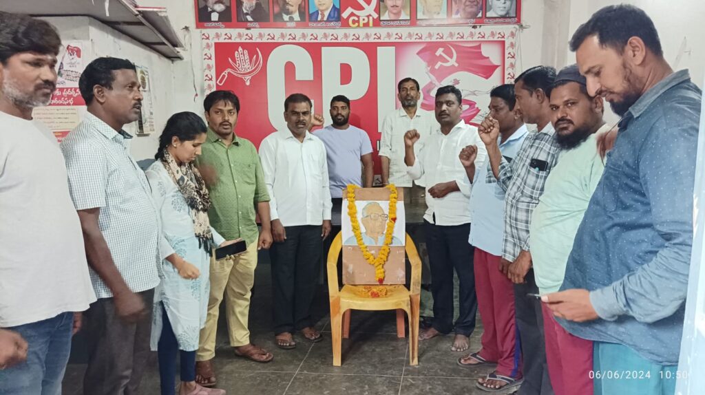 సిపిఐ జిల్లా కార్యాలయంలో అమరులు కామ్రేడ్ చండ్ర.రాజేశ్వర్ 110వ జయంతి సందర్భంగా ఆయన చిత్రపటానికి పూలమాలలు వేసి నివాళులర్పించడం జరిగింది ఈ సందర్భంగా సిపిఐ జిల్లా కార్యదర్శి పి.సుధాకర్ మాట్లాడుతూ స్వాతంత్ర సమరయోధులు, తెలంగాణ రైతాంగ సాయుధ పోరాట యోధులు 28 సంవత్సరాల పాటు సిపిఐ జాతీయ ప్రధాన కార్యదర్శిగా అమరజీవి చండ్ర రాజేశ్వరరావు పని చేశారని ఆయనకు ఉన్న వందల ఎకరాల భూమిని పేదలకు పంచడం జరిగిందని అన్నారు. చివరికి సొంత ఆస్తులు లేకపోయినా పార్టీ కార్యాలయంలోనే ఉంటూ జీవనం కొనసాగించారని అన్నారు ఆయన ఆశయ సాధన సమ సమాజం కోసం ప్రతి కార్యకర్త కూడా చేయాలని అన్నారు.