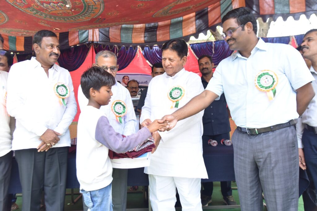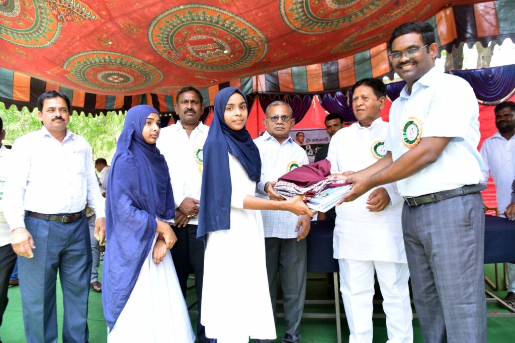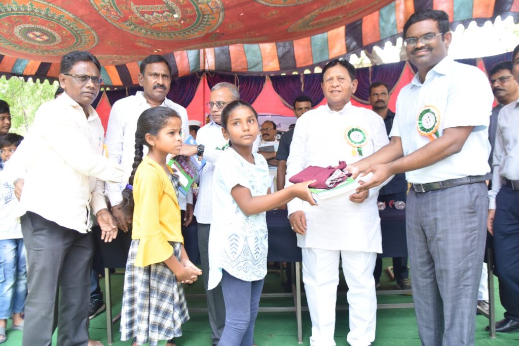 బడులు ప్రారంభమైన తొలి రోజే విద్యార్థులకు యూనిఫామ్ లు, బుక్స్ పంపిణీ