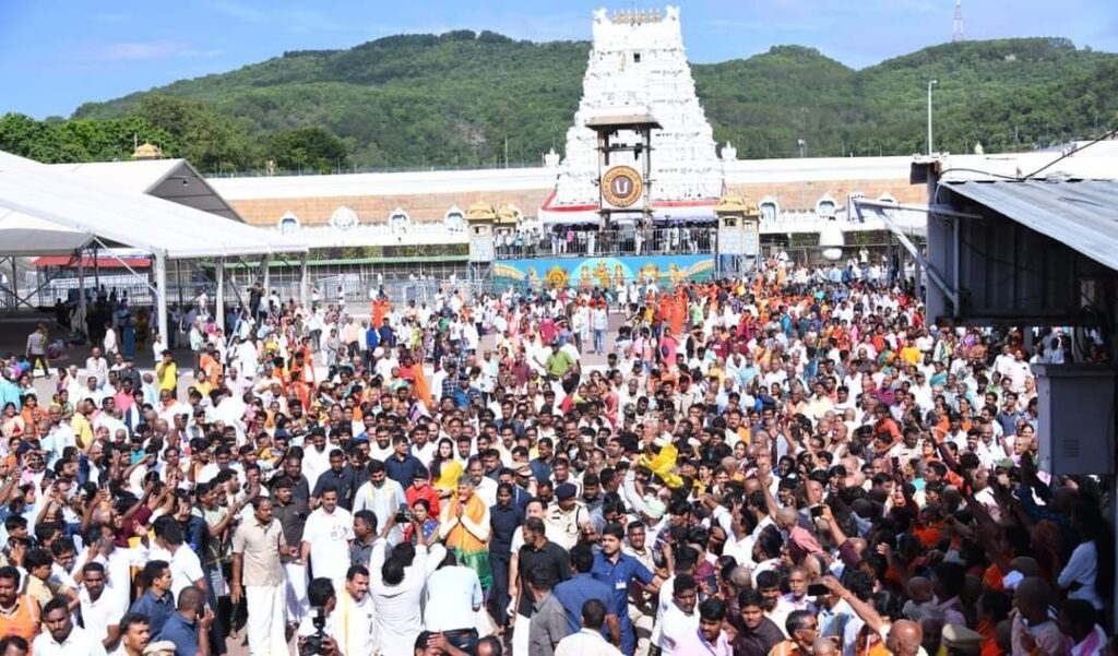 అఖిలాండం వద్ద చంద్రబాబు కొబ్బరికాయలు కొట్టి మొక్కులు చెల్లించుకున్నారు. తిరుమల పెద్ద జీయర్ మఠానికి వెళ్లి ఆశీర్వచనం తీసుకున్నారు. చంద్రబాబు వెంట ఆయన సతీమణి భువనేశ్వరి, కుమారుడు లోకేశ్, కోడలు బ్రాహ్మణి, మనవడు దేవాంశ్ ఉన్నారు. సీఎంను చూసేందుకు వైకుంఠం క్యూక్లాంపెక్స్ వద్దకు తెదేపా కార్యకర్తలు, నాయకులు భారీగా తరలివచ్చారు.