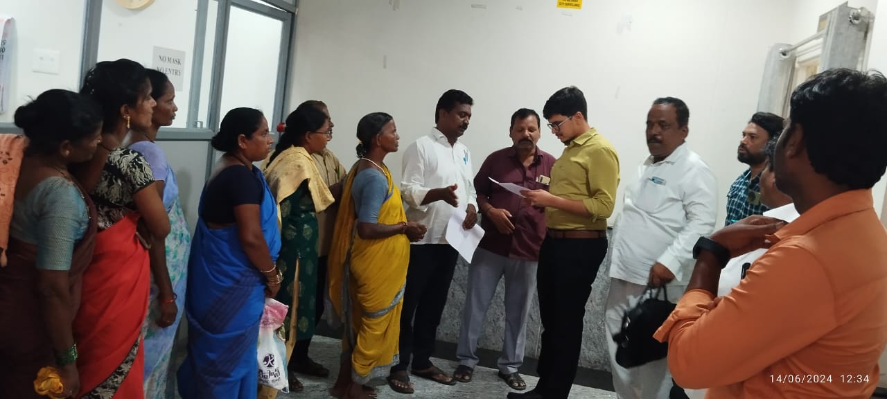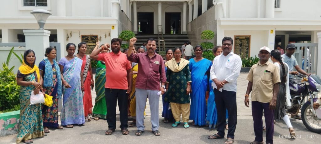 సబ్బులు,నూనెలు,బట్టలు, బట్టలు, కుట్టు కూలీలు, పనిముట్లు, చీపుర్లు, పారలు, గ్లౌజులు,బూట్లు, రైన్ కోర్ట్ అట్లాగే ఈఎస్ఐ లో కుటుంబ సభ్యుల పేర్లు నమోదు చేయాలని ఔర్సింగ్ కార్మికులకు అందరికీ గుర్తింపు కార్డు ఇవ్వాలని ఈరోజు నిరసన కార్యక్రమం చేపట్టడం జరిగింది అనంతరం నగరపాలక సంస్థ కమిషనర్ మంద ముకుందం గారికి వినత పత్రం అందజేయడం జరిగింది ఈ కార్యక్రమంలో బాలాజీ,ధర్మవ్వ, సుజాత, లింగం, వరలక్ష్మి లతోపాటు కార్మికులు పాల్గొనడం జరిగింది.