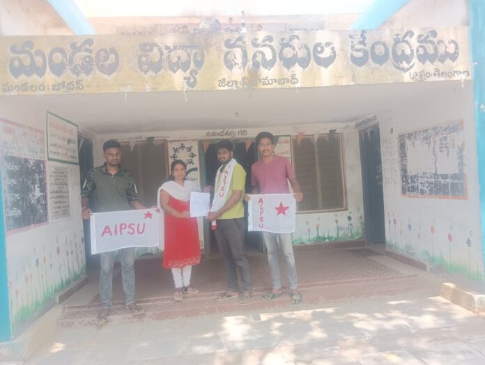 ఈ విద్యా సంవత్సరం విద్యార్థులకు విద్యాసంస్థలు సమస్యలతో స్వాగతం పలికాయని ప్రైవేట్ కార్పొరేట్ విద్యా సంస్థలు కనీస సౌకర్యాలు లేని విధంగా తయారయ్యాయని పోటీ బడి అడ్మిషన్లు చేసుకుంటున్నారని, అదే విద్యా బోధనలో ఎటువంటి నాణ్యత లేదని ఆయన అన్నారు. ఇకనైనా ఎంఈఓ విద్యాశాఖ అధికారులు పాఠ్య పుస్తకాలు అధిక ధరల విక్రయిస్తున్న విద్యాసంస్థలపైన చర్యలు తీసుకోవాలని లేనిపక్షంలో పెద్ద ఎత్తున ఆందోళన కార్యక్రమాలు చేస్తామని హెచ్చరించారు. ఈ కార్యక్రమంలో AIPSU నాయకులు జయంత్, పవన్, సాయి ప్రవీణ్ తదితరులు పాల్గొన్నారు.