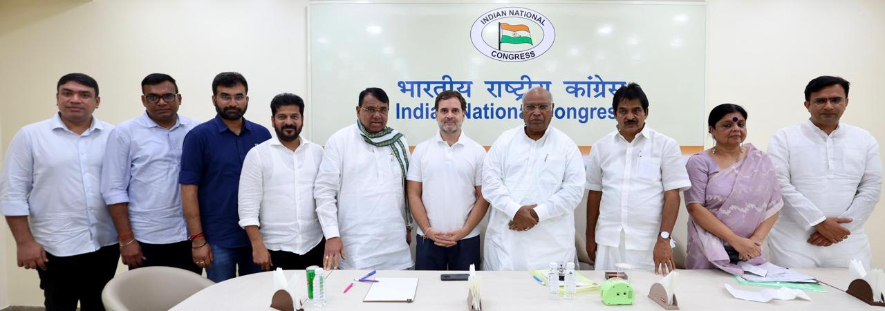 ఆల్ ఇండియా కాంగ్రెస్ కమిటీ అధ్యక్షులు మల్లిఖార్జున ఖర్గే, జనరల్ సెక్రటరీ కేసి వేణుగోపాల్, కాంగ్రెస్ అగ్రనేత రాహుల్ గాంధీ, తెలంగాణ రాష్ట్ర కాంగ్రెస్ వ్యవహారాల ఇంచార్జి దీపాదాస్ మున్శి ను రాష్ట్ర ముఖ్యమంత్రి శ్రీ రేవంత్ రెడ్డి తో కలిసి 24 అక్బర్ రోడ్డు లోని ఏ ఐ సి సి కార్యాలయంలో మర్యాదపూర్వకంగా కలిసిన మాజీ శాసన సభాపతి, మాజీ మంత్రి, బాన్సువాడ నియోజకవర్గ శాసనసభ్యులు శ్రీ పోచారం శ్రీనివాస రెడ్డి.
