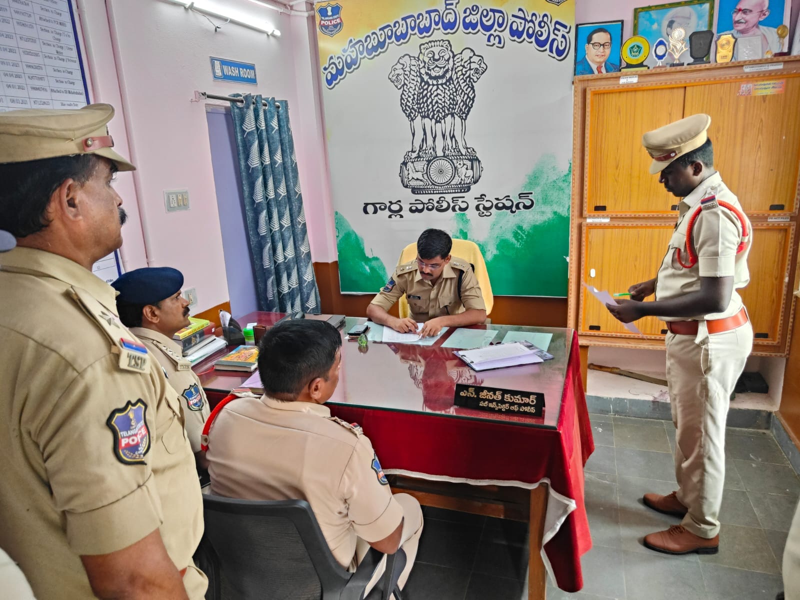 జిల్లా ఎస్పీ గార్ల పోలీస్ స్టేషన్ ను సందర్శించి స్టేషన్ రికార్డ్స్ ను, స్టేషన్ పరిసరాలను మరియు పోలీస్ స్టేషన్ లో సిబ్బంది నిర్వహిస్తున్న విధులను తనిఖీ చేసి పరిశీలించారు. అందులో భాగంగా పోలీస్ స్టేషన్ ఆవరణలో వాహనాల పార్కింగ్ ప్రదేశాలు . రిసెప్షన్, స్టేషన్ రైటర్, టెక్ టీమ్, ఎస్ హెచ్ వో, మెన్ రెస్ట్ రూమ్ , లాక్ అప్ రూమ్ ను తదితర ప్రదేశాలను పరిశీలించారు.