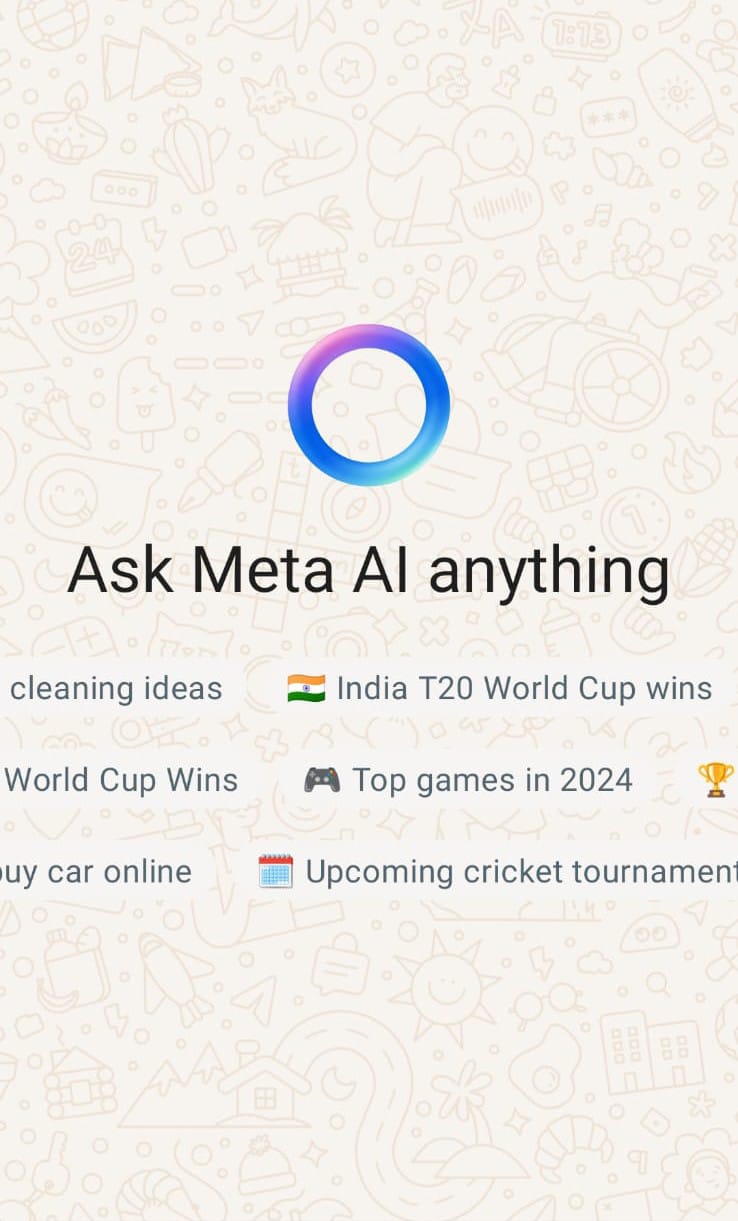 వాట్సాప్ ఓపెన్ చేయగానే రైట్ సైడ్ రౌండ్ షేప్లో రెయిన్ బో కలర్లో ఉన్న ఒక ఐకాన్ కనిపిస్తోంది. ఆ సింబల్పై క్లిక్ చేయగానే మెటా ఏఐ పేరుతో చాట్ బాక్స్ ఓపెన్ అవుతుంది. దీంట్లో మీరు ఏ సమాచారం అడిగినా క్షణాల్లో వచ్చేస్తుంది.