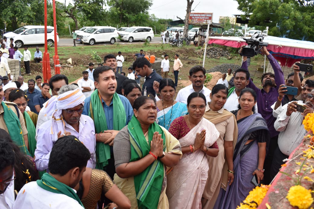 అమరవీరుల స్థూపం చుట్టూ ప్రహరీ గోడ నిర్మాణ పనులకు భూమి పూజ చేసిన ఇంచార్జీ మంత్రి సీతక్క