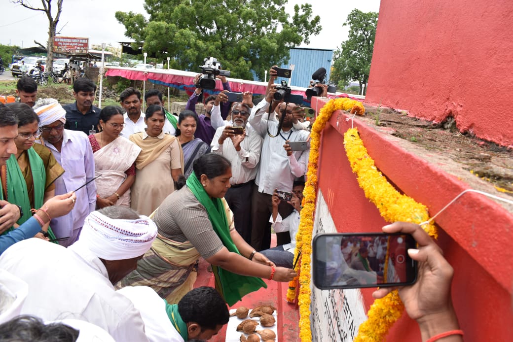 అమరవీరుల స్థూపం చుట్టూ ప్రహరీ గోడ నిర్మాణ పనులకు భూమి పూజ చేసిన ఇంచార్జీ మంత్రి సీతక్క