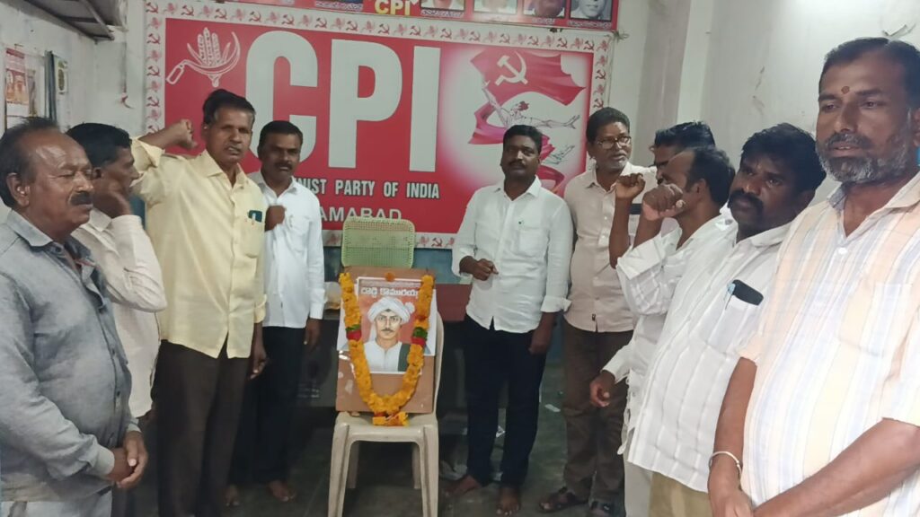 జరిగిందని ఈ పోరాటంలో 4500 మంది సిపిఐ కార్యకర్తలు ప్రాణాలు పోగొట్టుకోవడం జరిగిందని వీరందరి పోరాటం మూలంగానే నాటి నైజాం పాలనలో ఉన్నటువంటి తెలంగాణ ప్రాంతం భారతదేశంలో విలీనం కావడం జరిగిందని అన్నారు దొడ్డి కొమురయ్య పోరాట స్ఫూర్తితో కార్యకర్తలు పని చేయాలని అన్నారు ఈ కార్యక్రమంలో సిపిఐ జిల్లా కార్యదర్శి పి.సుధాకర్, సిపిఐ జిల్లా నాయకులు వై.ఓమయ్య, కే.రాజన్న, సాయిలు, జనార్ధన్, ఆనంద్, రాధాకుమార్ తదితరులు పాల్గొన్నారు.