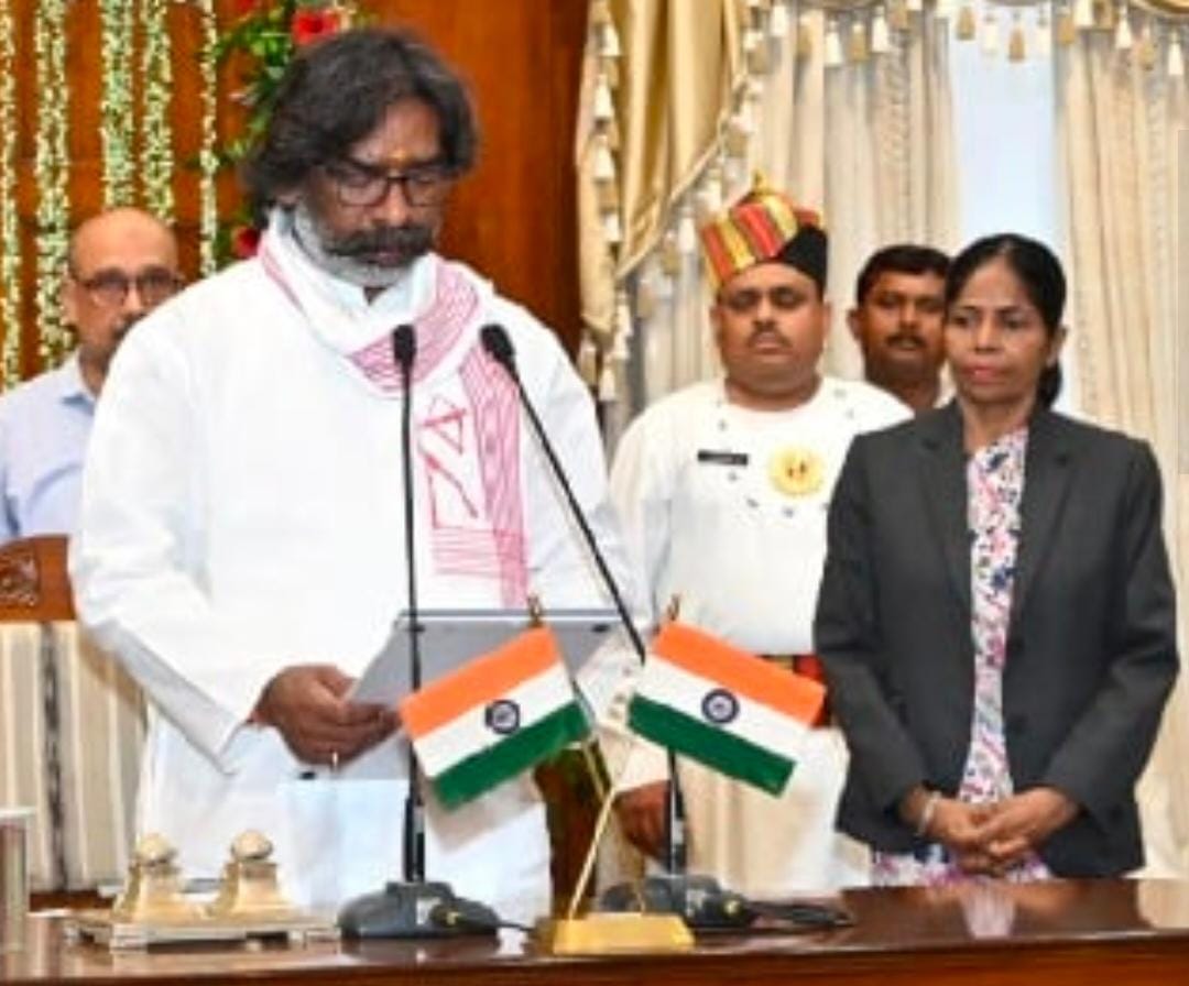 ఇటీవల బెయిల్ పై విడుద లైన హేమంత్ సొరెన్ నేడు ఝార్ఖండ్ ముఖ్యమంత్రిగా ప్రమాణ స్వీకారం చేశారు. ఐదు నెలల తర్వాత మళ్లీ ఝార్ఖండ్ ముఖ్యమంత్రి పీఠాన్ని సొరెన్ అధిష్ఠిం చారు.