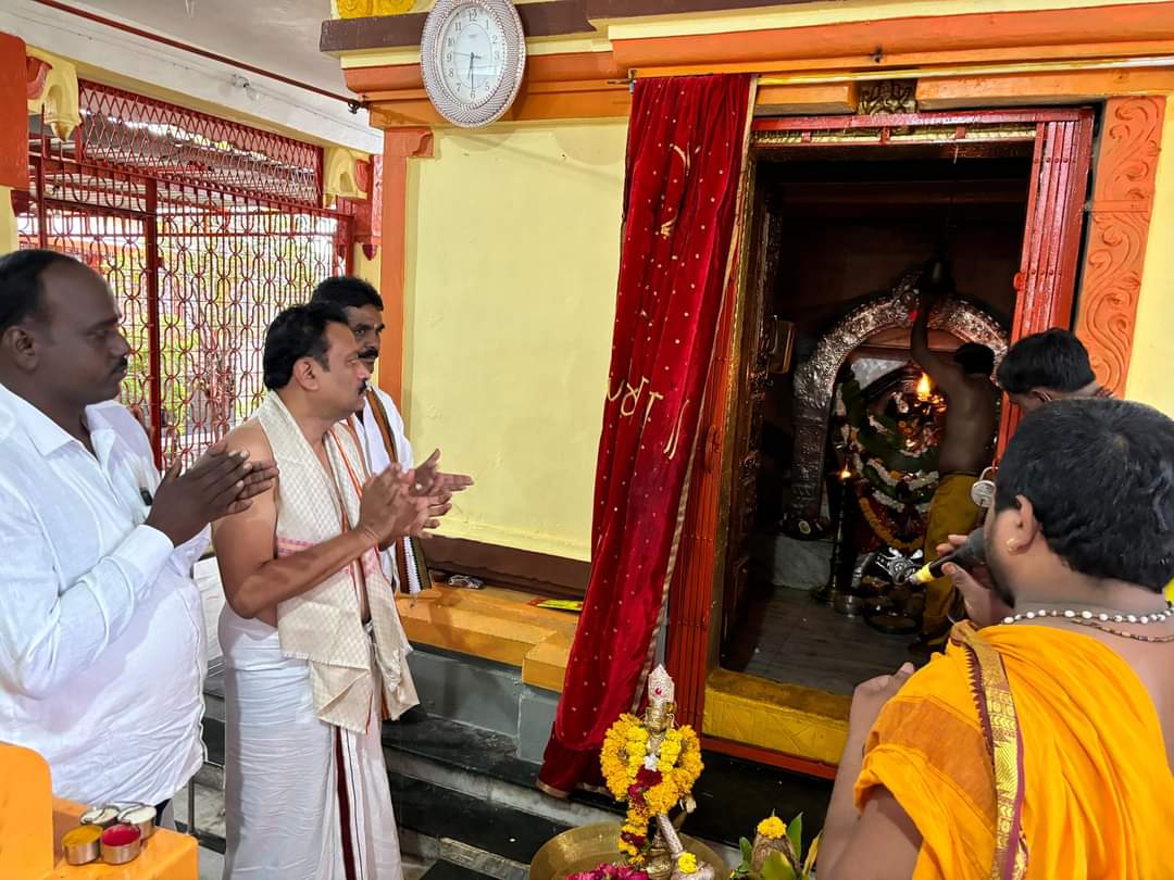 కామారెడ్డి జిల్లా జుక్కల్ నియోజకవర్గం మద్నూర్ మండలం, మిర్జాపూర్ గ్రామంలోని హనుమాన్ మందిరాన్ని ఎమ్మెల్యే తోట లక్ష్మీ కాంతారావు దర్శించుకొని ప్రత్యేక పూజలు చేశారు. ఆలయ పూజారులు ఆయనకు ఘన స్వాగతం పలికారు. శనివారం ఎమ్మెల్యే జన్మదినాన్ని పురస్కరించుకుని ఆయన అభిమానులు, కాంగ్రెస్ పార్టీ కార్యకర్తలు నాయకులు కార్యకర్తలు శుభాకాంక్షలు తెలిపారు. జన్మదినాన్ని పురస్కరించుకొని మీర్జాపూర్ హనుమాన్ ఆలయంలో ఎమ్మెల్యే ప్రత్యేక పూజలు నిర్వహించారు. వేద పండితులు మంత్రోచ్ఛారణతో ప్రత్యేక పూజలు జరిపి ఆశీర్వదించారు. అనతి కాలంలోనే ఎమ్మెల్యే నియోజకవర్గ ప్రజల ఆదరణను పొందగలిగారు. ప్రతినిత్యం ప్రజల మధ్య ఉంటూ ప్రజా సమస్యలను తెలుసుకుంటూ ఎప్పటికప్పుడు ప్రజా సమస్యలను తన సమస్యలుగా భావిస్తూ ప్రజల కష్టసుఖాల్లో పాలు పంచుకుంటున్నారు. పేదవారి కష్టాలను తెలుసుకునేందుకు నేరుగా వారి నివాసాల వద్దకు వెళ్లడం ఒక్కో రోజు పేదల మధ్యలో ఉంటూ వారి సమస్యలు తెలుసుకొని రాత్రి అక్కడే గడుపుతున్నారు. గతంలో పాలకులు జుక్కల్ నియోజకవర్గాన్ని వెనుకబాటు గురి చేశారని నియోజకవర్గాన్ని రాష్ట్రంలోనే ఆదర్శవంతంగా తీర్చిదిద్దడమే తన ధ్యేయంగా ఆయన ప్రతినిత్యం అడుగుల ముందుకు వేస్తున్నారు.