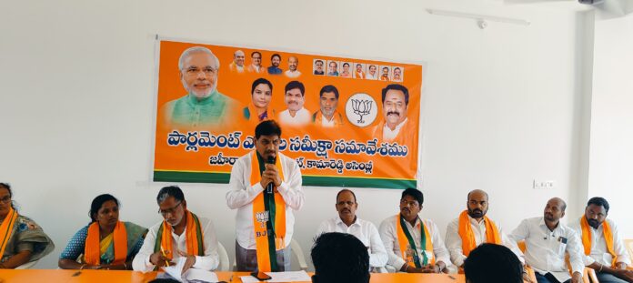 జహీరాబాద్ పార్లమెంట్ ఎన్నికల సమీక్షా సమావేశాలలో భాగంగా కామారెడ్డి జిల్లా కార్యాలయంలో కామారెడ్డి అసెంబ్లీ సమీక్షా సమావేశం నిర్వహించారు.ఈ కార్యక్రమానికి అతిథిగా విచ్చేసిన మాజీ పాటిల్ మాట్లాడుతూ మోది కి మద్దతుగా కమలం పువ్వు గుర్తుకు ఓటు వేసిన వారికి ధన్యవాదాలు తెలిపారు. కామారెడ్డి శాసన సభ్యులు కాటిపల్లి వెంకట రమణ రెడ్డి కృషితో కామారెడ్డిలో బీజేపీ కి అత్యధికంగా ఓట్లు వచ్చాయని కానీ మిగితా చోట్ల ప్రజల్ని ఆకట్టుకోలేక పోయామని అన్నారు. కామారెడ్డి నియోజకవర్గ కార్యకర్తలు ఇదే స్ఫూర్తి తో రాబోయే స్థానిక సంస్థల ఎన్నికల్లో అన్ని స్థానాలు గెలవాలనీ ఆశాభావం వ్యక్తం చేశారు.ఈ కార్యక్రమానికి అతిథిగా విచ్చేసిన పెద్దోళ్ల గంగారెడ్డి మాట్లాడుతూ తెలంగాణ పార్లమెంట్ ఎన్నికల ఫలితాలు సంతృప్తినిచ్చాయనీ, జహీరాబాద్ పార్లమెంట్ కూడా గెలుపు అంచుల్లో ఆగిపోయిందని ఆవేదన వ్యక్తం చేశారు. కామారెడ్డి నియోజకవర్గంలో నిస్వార్థంగా పని చేసి 19 వేళ మెజారిటీ తెచ్చిన కార్యకర్తలకు, వారికి నాయకత్వం వహించిన ఎమ్మెల్యే రమణ రెడ్డి కి ధన్యవాదాలు తెలిపారు. వచ్చే అసెంబ్లీ ఎన్నికల నాటికి తెలంగాణలో అధికారం సాధించే దిశగా బీజేపీ అడుగులు వేస్తుందని అందుకు కార్యకర్తలు ఇప్పటి నుండే సిద్ధం కావాలని అన్నారు.