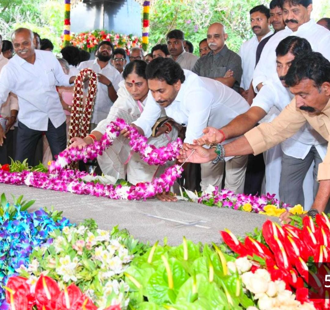 దివంగత ముఖ్యమంత్రి వైఎస్ రాజశేఖరరెడ్డి 75వ జయంతిని పురస్కరించుకొని వైఎస్ఆర్ జిల్లాలోని ఇడుపులపాయలో వైఎస్ ఆర్ ఘాటు వద్ద వైసీపీ అధినేత, మాజీ సీఎం వైఎస్ జగన్ మోహన్ రెడ్డి నివాళు లర్పించారు. సోమవారం ఉదయాన్నే జగన్ మోహన్ రెడ్డి, వైఎస్ భారతి, వైఎస్ఆర్ సతీమణి విజయమ్మ, కుటుంబ సభ్యులు వైఎస్ఆర్ ఘాట్ వద్దకు చేరుకుని ఘనంగా నివాళులర్పించారు.