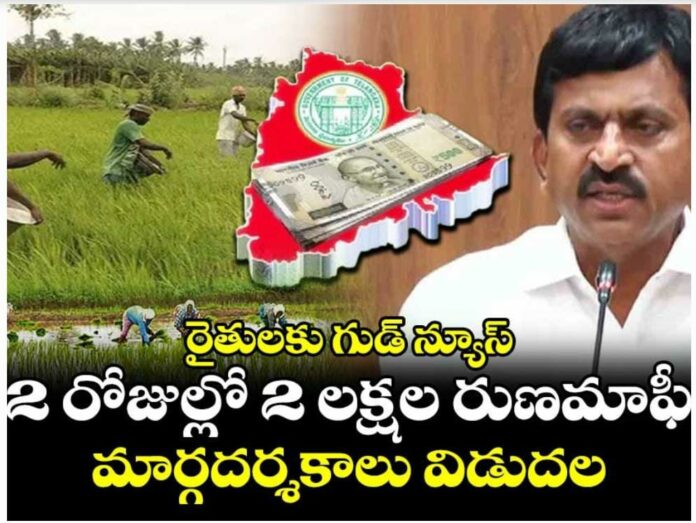 తెలంగాణ రైతులకు గుడ్ న్యూస్.. 2024, ఆగస్ట్ 15వ తేదీలోపు బ్యాంకుల్లోని 2 లక్షల రూపాయల అప్పు మాఫీకి సంబంధించి మంత్రి పొంగులేటి శ్రీనివాసులరెడ్డి మంచి విషయం చెప్పారు. రుణ మాఫీకి సంబంధించిన విధివిధానాలను 2 రోజుల్లో విడుదల చేస్తున్నామని వెల్లడించారు. మీడియాతో చిట్ చాట్ సందర్భంగా.. జూలై 9వ తేదీ ఈ విషయాన్ని స్పష్టం చేశారు. రెండు రోజుల్లో రుణమాఫీ గైడ్లైన్స్ విడుదల చేస్తామన్నారు.
