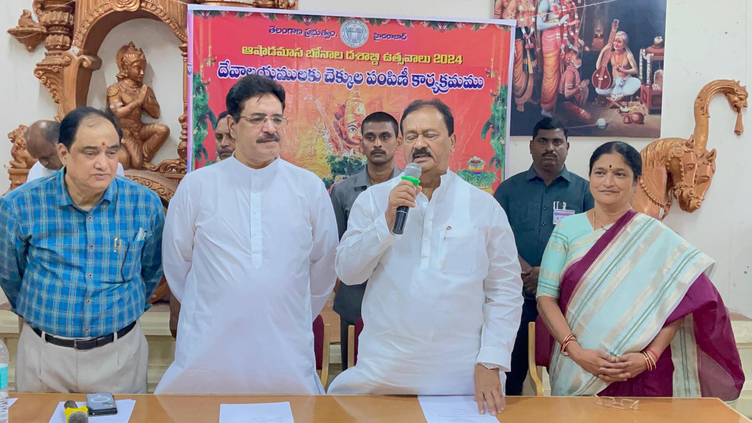 హైదరాబాదులోని దేవాదాయ శాఖ రాష్ట్ర కార్యాలయంలో ఆషాడమాస బోనాల దశబ్ది ఉత్సవాల భాగంగా హైదరాబాదులో 1058 దేవాలయములకు రాష్ట్ర ప్రభుత్వం 4,82,49,300/- ప్రభుత్వం విడుదల చేసారు. మలక్ పెట నియోజకవర్గానికి చెందిన పలు దేవాలయాలకు చెక్కులు పంపిణి చేసిన రాష్ట్ర ప్రభుత్వ సలహాదారులు షబ్బీర్ అలీ, మలక్ పేట ఎమ్మెల్యే బాలాల. ఈ కార్యక్రమంలో దేవాదాయ శాఖ డిప్యూటీ కమీషనర్ రామకృష్ణ పాల్గొన్నారు.