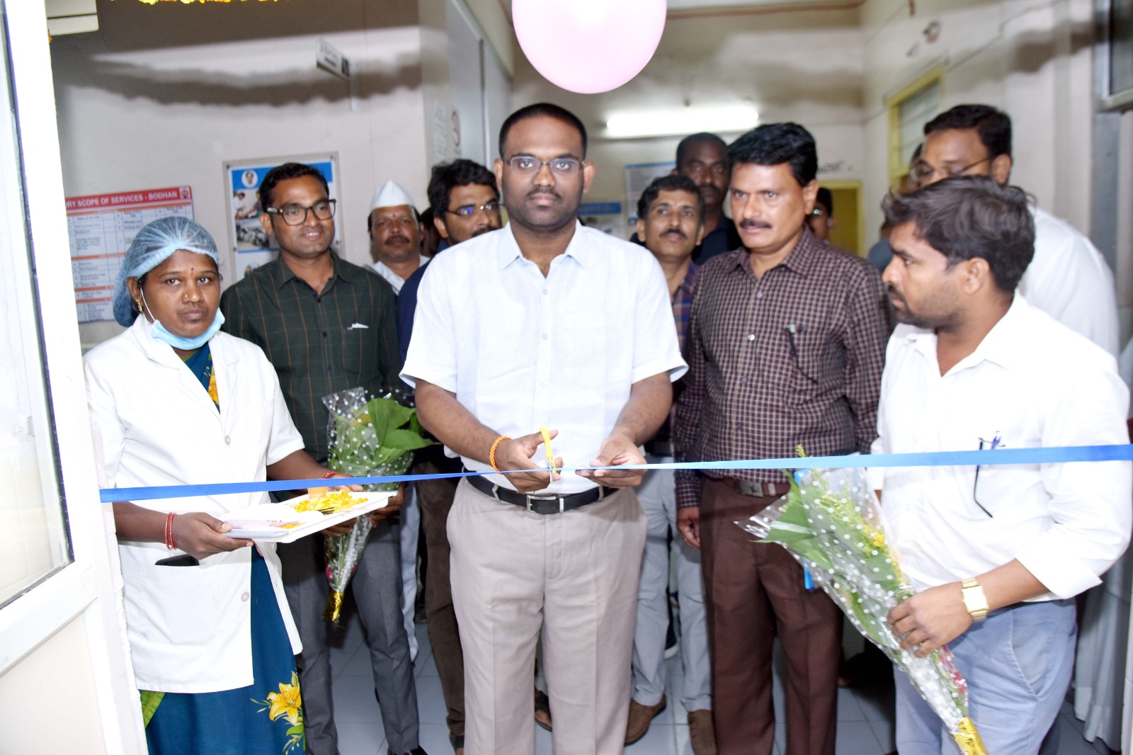బోధన్ పట్టణంలోని ప్రభుత్వ జిల్లా ఆసుపత్రిలో అందుబాటులోకి తెచ్చిన ఉచిత డయాలసిస్ సేవల విభాగాన్ని కలెక్టర్ రాజీవ్ గాంధీ హనుమంతు ఆదివారం ప్రారంభించారు. డయాలసిస్ విభాగం ద్వారా రోగులకు అందించే సేవల గురించి అడిగి తెలుసుకున్నారు.