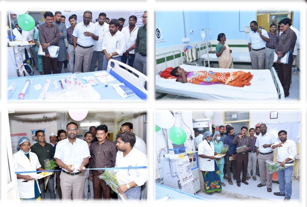 బోధన్ పట్టణంలోని ప్రభుత్వ జిల్లా ఆసుపత్రిలో అందుబాటులోకి తెచ్చిన ఉచిత డయాలసిస్ సేవల విభాగాన్ని కలెక్టర్ రాజీవ్ గాంధీ హనుమంతు ఆదివారం ప్రారంభించారు. డయాలసిస్ విభాగం ద్వారా రోగులకు అందించే సేవల గురించి అడిగి తెలుసుకున్నారు. ప్రతిరోజూ సగటున ఇరవై మంది వరకు డయాసిస్ సేవలు వినియోగించుకోవచ్చని వైద్యులు తెలిపారు. చుట్టుపక్క మండలాల నుండి డయాలసిస్ పేషంట్లు ఇక్కడికి వస్తారని, ఏకకాలంలో ఏడుగురు చొప్పున రోగులకు డయాలసిస్ చేయవచ్చని కలెక్టర్ దృష్టికి తెచ్చారు. రోగులకు మెరుగైన సేవలు అందించాలని, ప్రభుత్వ ఆసుపత్రుల పనితీరుపై ప్రజల్లో నమ్మకాన్ని పెంపొందించాలని ఈ సందర్భంగా కలెక్టర్ హితవు పలికారు. ఆసుపత్రిలోని ఆర్.ఓ ప్లాంట్, పోస్ట్ ఆపరేటివ్ వార్డ్, ఇతర విభాగాలను కలెక్టర్ సందర్శించి, స్థానికంగా గల సౌకర్యాలను పరిశీలించారు. ఆసుపత్రిలో చికిత్స పొందుతున్న ఇన్ పేషంట్లను పలుకరించి, వారికి అందుతున్న వైద్య సేవల గురించి వాకబు చేశారు. వైద్యుల కొరత ఉన్నట్లయితే కాంట్రాక్టు పద్ధతిలో వైద్యుల నియామకాల కోసం ప్రతిపాదనలు పంపించాలని అధికారులకు సూచించారు. వైద్యులు, సిబ్బంది అందరూ సమయ పాలన పాటిస్తూ రోగులకు నాణ్యమైన సేవలు అందించేలా అంకిత భావంతో విధులు నిర్వర్తించాలని అన్నారు. ప్రస్తుత వర్షాకాలంలో సీజనల్ వ్యాధులు ప్రబలేందుకు ఎక్కువగా ఆస్కారం ఉన్నందున అప్రమత్తంగా ఉండాలని, వ్యాధులు సోకకుండా ముందు జాగ్రత్తలు తీసుకోవాలని, అవసరమైన మందులను అందుబాటులో ఉంచాలని సూచించారు. కలెక్టర్ వెంట బోధన్ ఆర్డీఓ రాజేశ్వర్, తహసీల్దార్ కె.గంగాధర్, డీసీహెచ్ఎస్ డాక్టర్ శివశంకర్, ఆసుపత్రి సూపరింటెండెంట్ డాక్టర్ రాములు, ఆర్.ఎం.ఓ డాక్టర్ అబ్దుల్ రహీం తదితరులు ఉన్నారు.