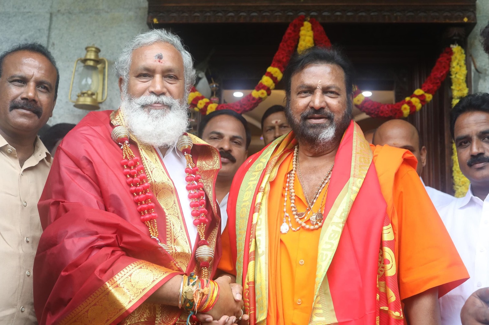 చంద్రగిరి మండలం, ఏ రంగంపేట సమీపంలోని ఎం.బి.యు వ్యవస్థాపకులు, ప్రముఖ సినిమా హీరో మంచు మోహన్ బాబుని చంద్రగిరి ఎమ్మెల్యే పులివర్తి నాని సోమవారం ఉదయం మర్యాదపూర్వకంగా కలిశారు. మోహన్ బాబు ఆహ్వానం మేరకు ఎమ్మెల్యే నాని విద్యానికేతన్ లోని మోహన్ బాబు నివాసంలో కలిశారు. మోహన్ బాబు ఎమ్మెల్యే నానికి శాలువా కప్పి పుష్పగుచ్చం అందించి ఆహ్వానించారు. ఒకరినొకరు యోగక్షేమాలు అడిగి తెలుసుకున్నారు. ఇరువురు కలిసి అల్పాహారం స్వీకరించారు. ఎన్నో ఆటుపోట్లకు తట్టుకొని ఎమ్మెల్యేగా గెలవడం ఎంతో సంతోషకరమని మోహన్ బాబు అన్నారు. చంద్రగిరి అభివృద్ధికి సహకార అందించాలని ఎమ్మెల్యే నాని మోహన్ బాబును కోరారు. సామాజిక సేవలో తాను ఎప్పుడూ ముందు ఉంటానని చంద్రగిరి అభివృద్ధికి తన వంతు సహాయ సహకారాలు అందిస్తానని మోహన్ బాబు ఎమ్మెల్యే నానికి మాటిచ్చారు.