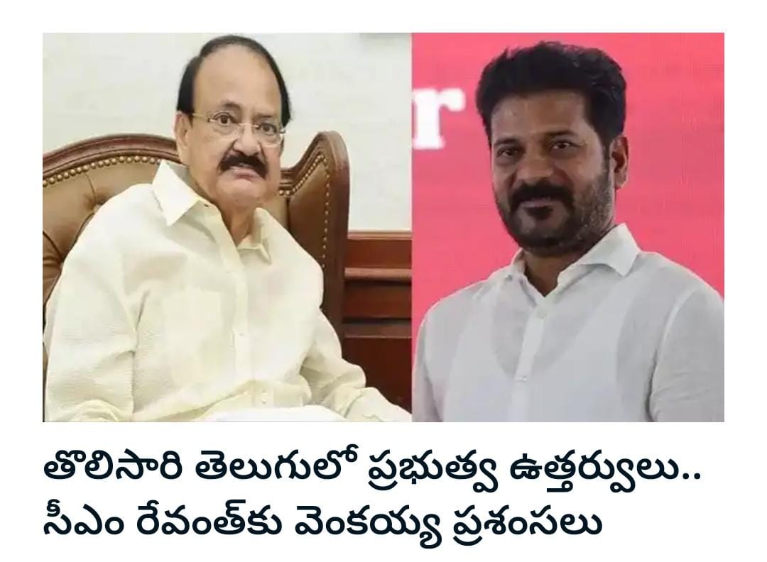 ప్రభుత్వ ఉత్తర్వులు తొలిసారి తెలుగులో జారీ చేయడం చాలా సంతోషకరమని మాజీ ఉప రాష్ట్రపతి వెంకయ్య నాయుడు హర్షం వ్యక్తంచేశారు. ఈ నేపథ్యంలోనే ఆయన మంగళవారం ట్విట్టర్ వేదికగా ఆసక్తికర ట్వీట్ చేశారు.తెలుగు రాష్ట్రాల్లో ప్రభుత్వ ఉత్తర్వులు సహా పరిపాలనకు సంబంధించిన అంశాలు తెలుగులో జారీ చేయాలని తాను ఎప్పటి నుంచో సూచిస్తూనే ఉన్నానని గుర్తుచేశారు. తెలంగాణ ప్రభుత్వం తొలిసారి తెలుగులో, అందులోనూ రైతుల రుణమాఫీ మార్గదర్శకాలపై తెలుగులో ఉత్తర్వులు జారీ చేయడం అభినందనీయమన్నారు. ప్రజల కోసమే పరిపాలన అయినప్పుడు వారికి సులువుగా అర్థమయ్యే భాషలోనే ప్రభుత్వ ఉత్తర్వులు, పరిపాలనకు సంబంధించి ఇతర సమాచారం ఉండాలని తాను ఎప్పటినుంచో చెబుతున్నానని వివరించారు.
